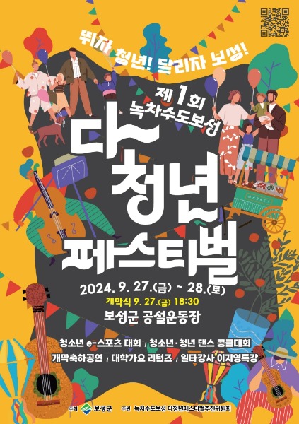 보성군은 오는 9월 27일부터 28일까지 보성공설운동장에서 활기와 열정으로 가득 찬 ‘제1회 녹차수도 보성 다~청년 페스티벌'을 개최한다고 밝혔다.