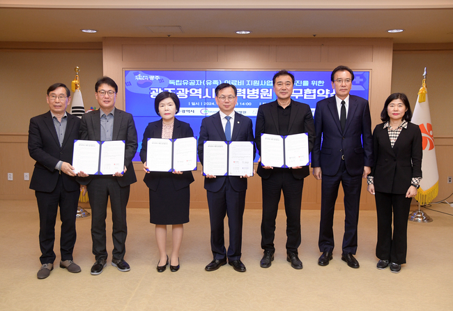광주광역시는 지난 15일 시청 비즈니스룸에서 씨엠맘 삼성병원, 인구보건복지협회 가족보건의원 광주전남지회, 광주센트럴병원 등 지역 의료기관 3곳, 약국 3곳과 ‘광주 독립유공자 의료비 지원사업 업무협약’을 체결했다.