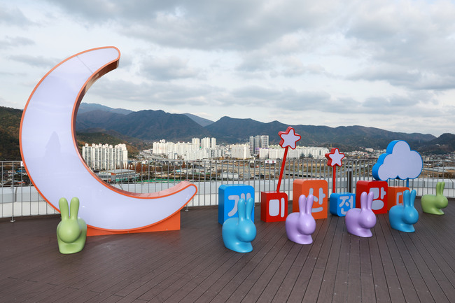 이번에 새롭게 선보인 개미산전망대 포토존은 대형 달 구조물, 구름, 별, 그리고 친근한 토끼 조형물로 꾸려졌다.