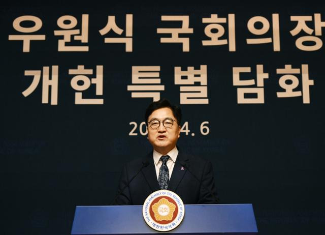 우 의장은 이날 발표한 `개헌 제안 대국민 담화문`에서 "최근 위헌적 비상계엄과 탄핵 정국을 겪으며, 현행 헌법이 대통령 권력을 둘러싼 극한 갈등과 승자독식 정치구조를 근본적으로 방지하지 못하는 한계가 드러났다"고 강조했다.