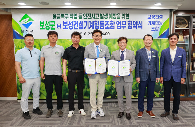 보성군이 지난 25일, 보성건설기계협동조합(이사장 임승호)과 자연 재난 발생 시 긴급 투입되는 장비의 작업 중 발생할 수 있는 안전사고를 예방하기 위한 업무 협약(MOU)을 체결했다.
