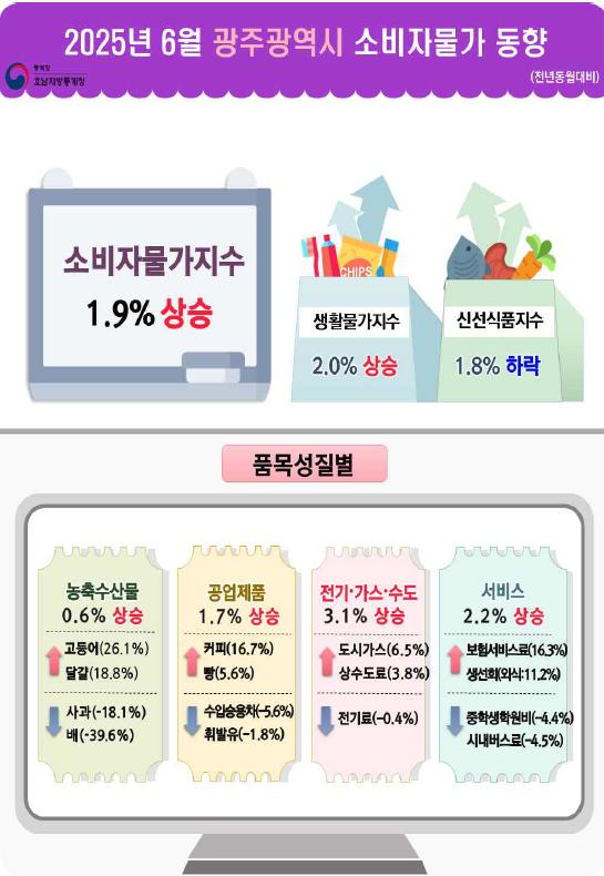 호남지방통계청은 지난 2일, 6월의 광주광역시와 전라남도의 소비자물가동향을 발표했다.