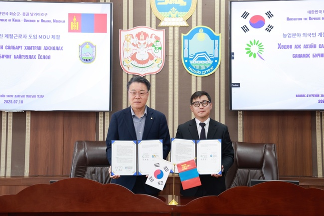 화순군은 지난 10일 구복규 화순군수와 화순군의회, 화순군지부 및 화순관내농협 등이 몽골 날라이흐구를 방문하여 계절근로자 업무협약을 체결했다.