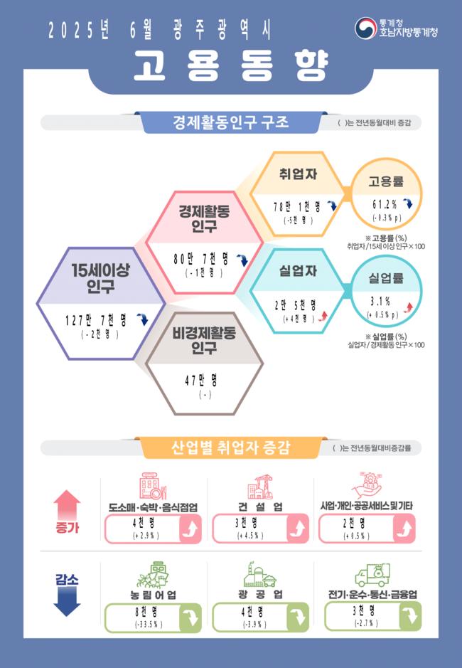 호남지방통계청은 지난 16일 <2025년 6월 광주·전남 고용동향>을 발표했다.