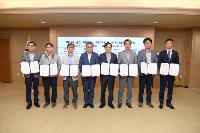 이번 협약은 지역 대표기업인 앰코테크놀로지코리아, 삼성전자, 세방리튬배터리, LG이노텍, 광주글로벌모터스 등이 참여하며, 이들 기업에서 매립·소각되는 폐플라스틱의 재활용 전환을 위해 협업하고자 마련됐다.