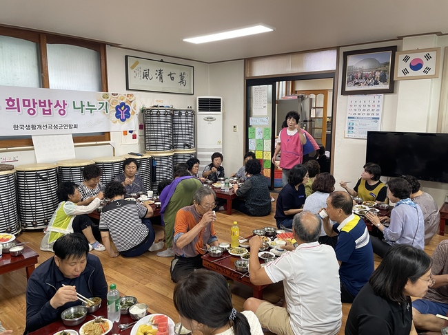 ‘희망밥상 나눔’은 생활개선회 회원들이 읍·면별 마을회관을 찾아 직접 식사를 만들어 제공하는 사업이다. 어르신들의 영양과 건강을 챙길 뿐만 아니라 주민 간 교류를 활성화하는 것을 목표로 한다.