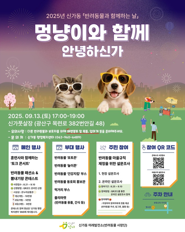 신가동에 따르면, ‘멍냥이와 함께 안녕하신가’는 13일 오후 5시부터 광산구 신가풋살장에서 열린다.