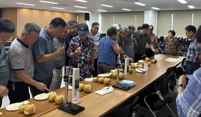 시는 공모에 앞서 농촌진흥청과 함께 신화 품종 재배 농가 35명을 대상으로 재배기술 교육과 숙기 판정 컨설팅을 진행하며 고품질 수출을 위한 사전 준비에 힘써왔다.