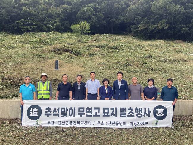 장흥군 관산읍행정복지센터는 추석 명절을 앞두고 지역 공동묘지 6개소에 벌초 작업을 진행했다고 밝혔다.