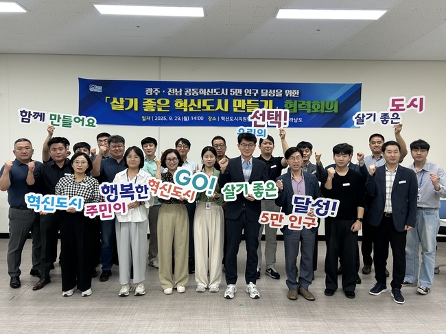 전라남도와 나주시는 광주·전남 공동혁신도시 정주인구 5만 달성을 위한 ‘살기 좋은 혁신도시 만들기’ 협력 회의를 개최하고, 혁신도시 정주 여건 개선을 위한 다양한 방안을 마련했다고 밝혔다.