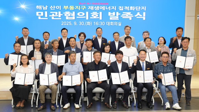 해남군은 지난달 30일 해남군청 대회의실에서 ‘해남 산이 부동지구 재생에너지 집적화단지 민관협의회’발족식을 개최해 대규모 재생에너지 집적화단지 조성을 위한 본격적인 민관 협력 체계 구축에 나섰다고 밝혔다.