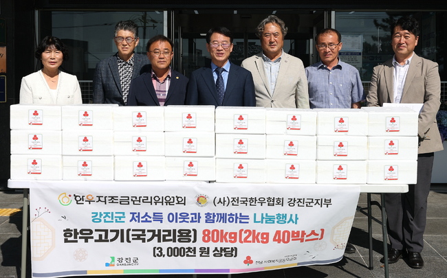 김은주 (사)전국한우협회 강진군지부 회장은 “민족대명절 추석을 맞아 관내 소외계층에 건강과 행복을 전하고 나눔을 실천하기 위해 맡겼다”면서 “이번 작은 나눔이 어려운 이웃들에게 큰 힘이 되길 바란다”라고 말했다.