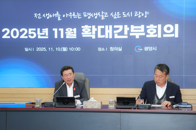 광양시는 시청 창의실에서 「11월 확대간부회의」를 열고, 당면 현안을 점검하며 시정 운영 방향을 논의했다 10일 밝혔다.