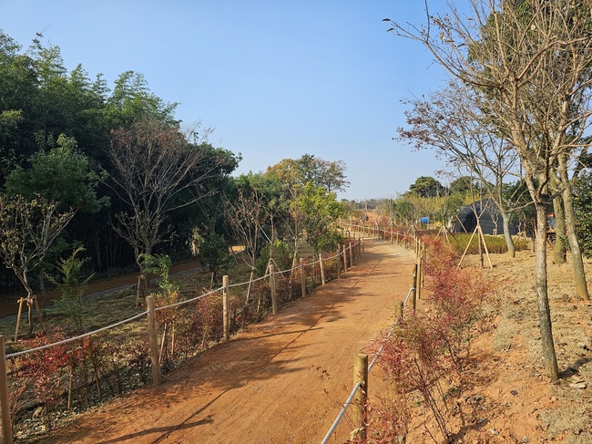 학림마을 주민단체참여숲 황톳길은 ‘2023년 전라남도 으뜸마을사업’으로 조성된 기존 황톳길과 연계해 ‘2025년 주민단체참여숲 조성사업’으로 교목 179주, 관목 4,475주, 초화류 1만 3,090본을 식재했다.