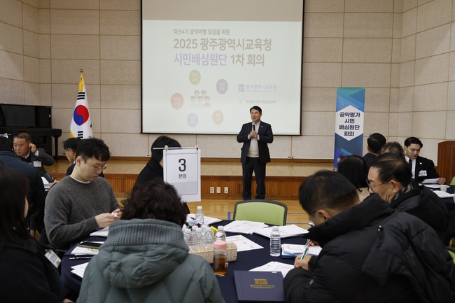 광주시교육청은 지난 3일 광주시교육청교육연수원 보람관에서 공약평가시민배심원단 50명을 위촉하고 1차 회의를 진행했다고 밝혔다.