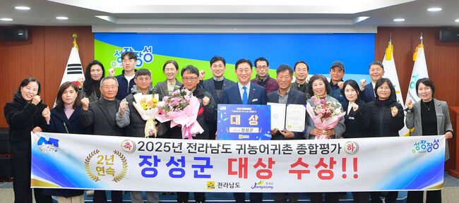 장성군이 전라남도 귀농어귀촌 종합평가에서 2년 연속 1위를 기록하며 ‘대상’을 수상했다고 13일 밝혔다.