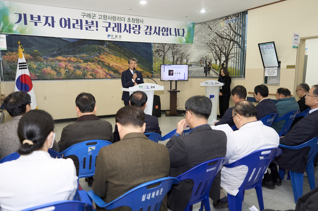 행사에 참석한 김광태 구례장학회 이사장은 기부자를 대표해 “기부자들의 소중한 마음이 모인 고향사랑기부금으로 지역주민을 위한 귀중한 의료장비가 지원되어 뜻 깊다”며 “앞으로도 고향사랑기부가 지속적으로 이어지길 바란다”고 말했다.
