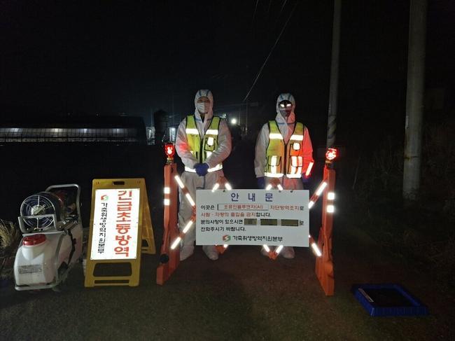 발생 농장 입구에 통제초소를 설치해 외부 차량과 인력 출입을 철저히 관리하고 관내 전 가금 농가에 발생 상황을 즉시 전파해 방역대(반경 10km 이내) 농가에 이동 제한과 집중 소독을 병행하고 있다.