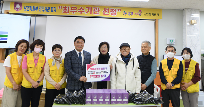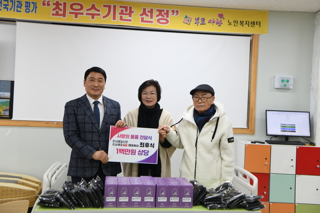 최후식 (주)호남매일신문사 대표이사는 23일 부모사랑 노인복지센터(센터장 이소영)에서 어르신들을 위한 '사랑의 물품(100만원 상당) 전달식'을 진행했다.