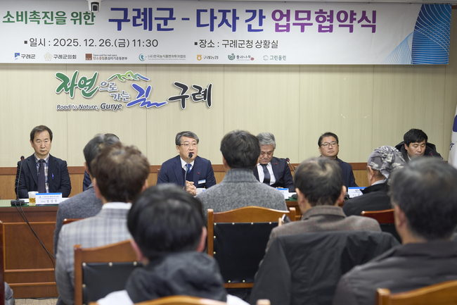 구례군은 지난 26일 군청 상황실에서 친환경 농업의 가치를 확산하고 쌀 소비 기반을 강화하기 위해 공공·금융·농협·민간이 참여하는 다자간 업무협약을 체결했다고 밝혔다.