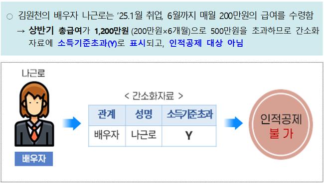 다만 반기별로 수집되는 근로소득은 2025년 상반기 소득까지만 반영돼, 명단이 제공되지 않더라도 11~12월 소득을 포함한 연간 소득금액을 확인해 공제 가능 여부를 판단해야 한다고 국세청은 유의사항으로 밝혔다.