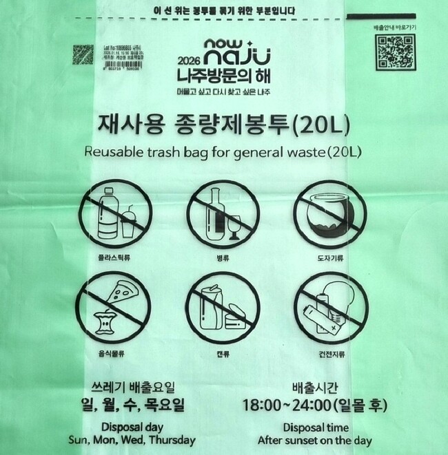 특히 종량제봉투는 사용 빈도가 높은 생활용품인 만큼 반복적인 노출을 통해 ‘2026 나주방문의 해’를 시민들에게 자연스럽게 각인시키는 홍보 효과가 있을 것으로 전망된다.