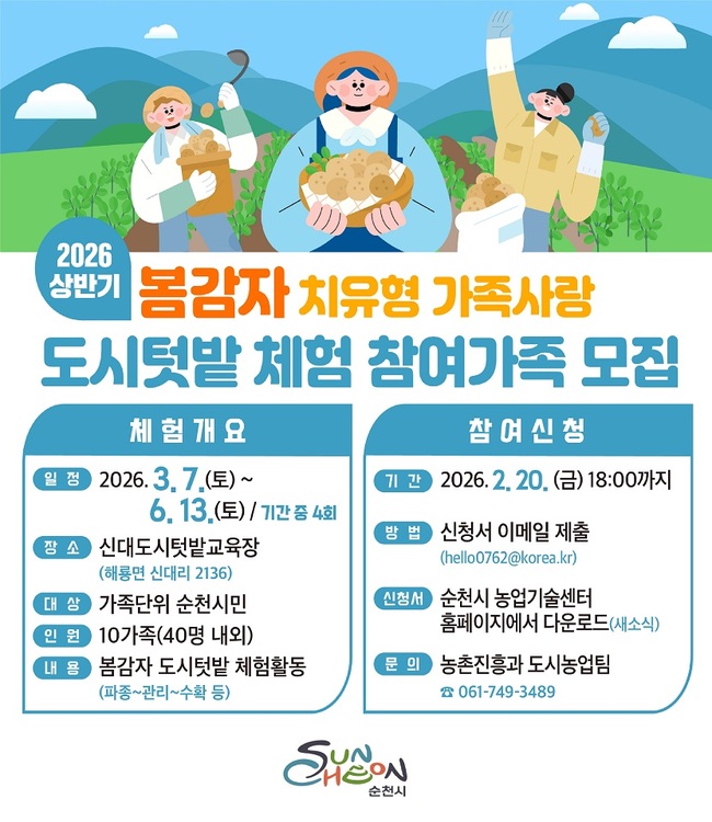 신청은 전자우편으로 접수하며, 자세한 사항은 순천시농업기술센터홈페이지(https://www.suncheon.go.kr/sca)에서 확인할 수 있다.