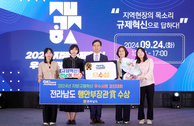 전라남도는 대구 EXCO에서 열린 행정안전부의 ‘2024년 지방규제혁신 우수사례 경진대회’에서 우수상(행안부장관상)을 수상했다고 밝혔다.