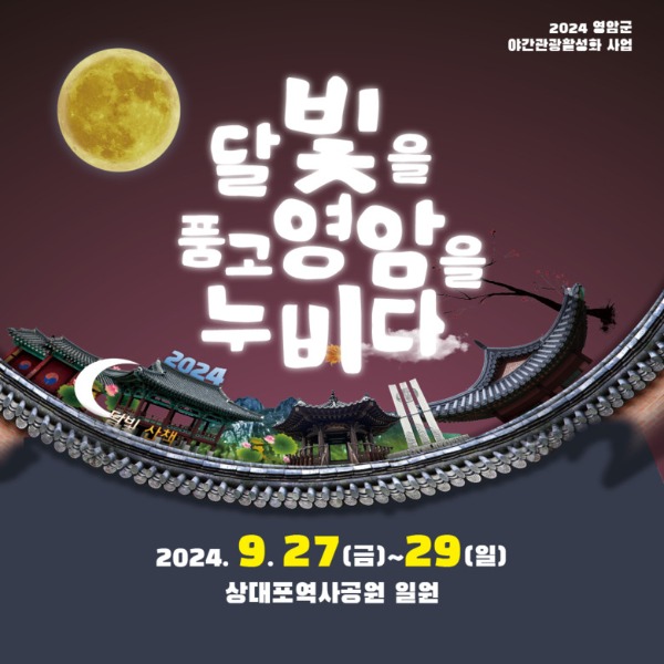 영암군이 2024년 야간관광 활성화 사업 ‘달빛을 품고, 영암을 누비다’를 이달 27~29일 군서면 상대포 역사공원과 구림마을에서 개최한다.