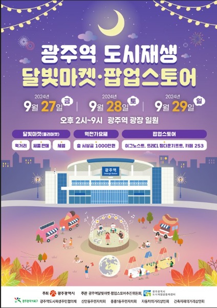 광주광역시는 27일부터 29일까지 사흘간 광주역 광장 일원에서 광주역 도시재생 달빛플리마켓‧팝업스토어를 연다.