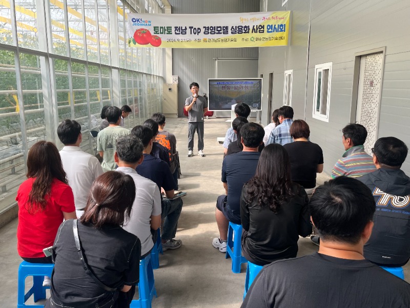 이날 연시회에서는 전남지역 방울토마토 재배 농가, 관계 공무원이 참석해 사업 추진 성과 보고 및 경영모델 도입 장비, 투입 기술 등을 선보였다.