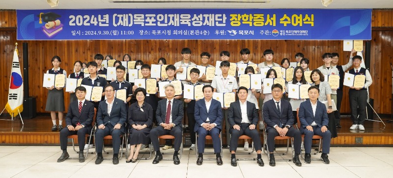 목포인재육성재단은 지난 달 30일 목포시청에서 고등학교 성적 우수 장학증서 전달식을 개최했다.