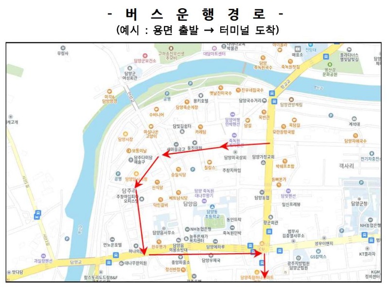 담양군, 담양시장 버스노선 경유 시범 운영 … 장날(2일, 7일) 운행