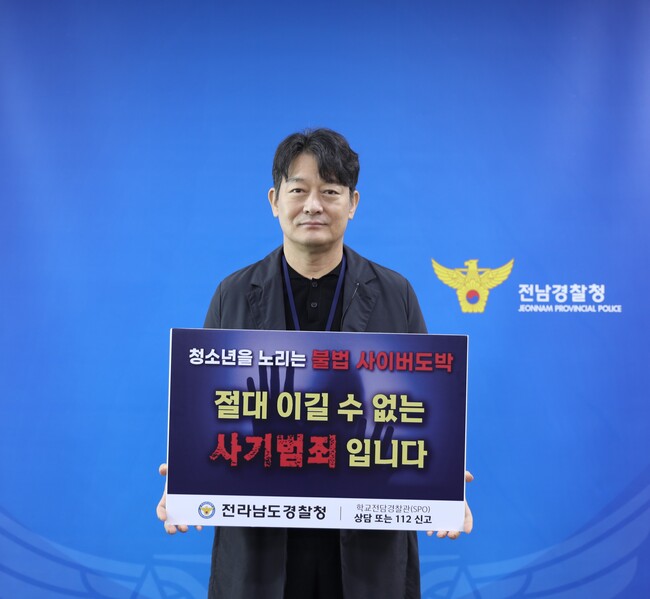 전라남도경찰청은 배우 조성하, 장동윤, 김민호, 이엘과 함께 청소년 불법 사이버 도박 근절을 위한 홍보 메시지 영상을 제작·배포하여 눈길을 끌고 있다.