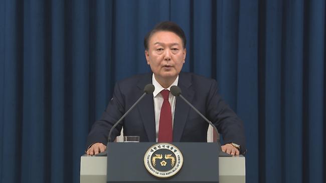 윤석열 대통령이 오늘 오전 10시 7일 오전 서울 용산 대통령실 청사 브리핑실에서 열린 '대국민담화 및 기자회견'에서 대국민 담화문을 발표 했다.