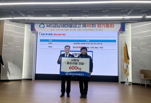 광주 동구 MG금남새마을금고는 지난 15일 본점 5층 대강당에서 열린 제40차 정기총회에서 장학금 및 사랑의 좀도리 쌀 전달식을 진행했다.