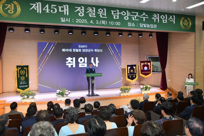 정철원 군수는 취임사를 통해 “담양의 발전과 변화를 위해 저를 선택해 주신 만큼 낮은 자세와 무거운 책임감으로 군정에 임하겠다”라며 “일평생 담양에서 살아온 경험과 지역 곳곳에서 민원을 해결한 3선 의원의 노하우를 살려 담양의 새로운 길을 열겠다”라는 포부를 전했다.