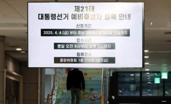 앞서 선관위는 윤 전 대통령 파면으로 조기 대선 사유가 확정된 지난 4일 21대 대선 예비 후보자 등록을 시작했다.