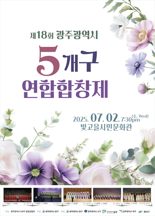 광주 동구는 오는 7월 2일 오후 7시 30분 빛고을시민문화관에서 제18회 광주 5개구 연합합창제가 열린다고 밝혔다.