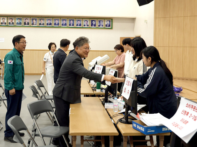 영광군 장세일 군수는 지난 22일, 지역 주민들의 “민생회복 소비쿠폰” 신청이 진행 중인 영광읍사무소를 찾아 현장점검과 소비쿠폰 지급업무에 힘쓰는 관계자 등을 격려하고, 현장에서 신청 중인 군민들과 직접 소통하는 시간을 가졌다.