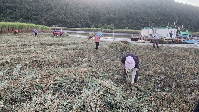 시는 집중호우가 지나간 뒤 소조기 기간을 활용해 원형갈대 군락 내 해양쓰레기와 고엽갈대 제거 작업을 진행 중이며, 일부 훼손된 구간에는 주변 건강한 갈대를 이식해 원형구조의 경관을 회복하는 작업도 병행하고 있다.