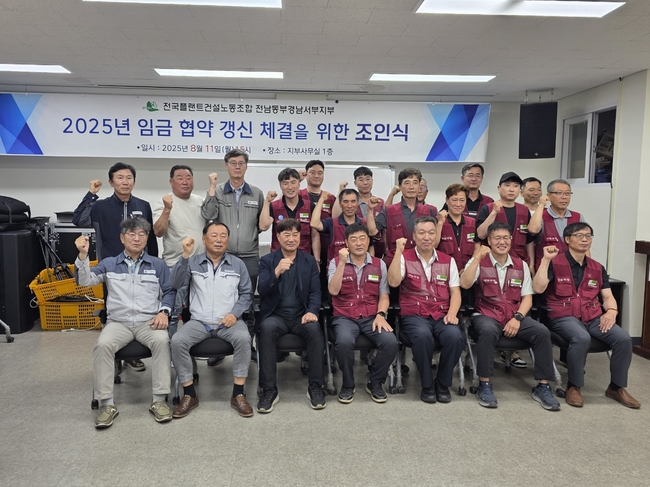 협상안 조인식은 전날 플랜트건설노조 전남 동부 경남 서부지부 사무실에서 열렸다. 전국 플랜트건설노조 위원장, 전국플랜트건설노조 전동경서지부 지부장, 광양제철산업단지전문건설인협의회장 등 노사 관계자 20여 명이 참석했다.