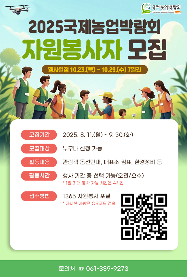 (재)전라남도국제농업박람회가 다음달 30일까지 2025국제농업박람회 자원봉사자를 모집한다.