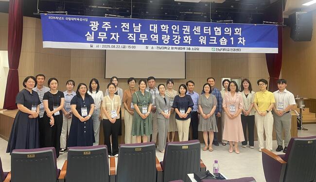 28일 전남대에 따르면 전남대 인권센터는 지난 22일 전남대 제1학생마루 소강당에서 ‘2025년 제1차 광주·전남 대학인권센터협의회 실무자 직무역량강화 워크숍’을 개최했다.