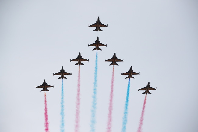 국산 초음속 항공기 T-50B 8대 편대로 구성된 ‘블랙이글스’는 고도의 결속력을 기반으로 다양한 특수비행을 선보이고 있다.