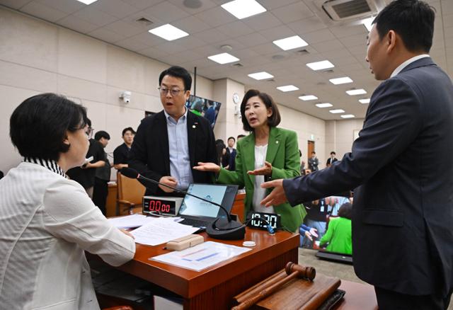 나 의원은 추 위원장이 국민의힘 의원들의 의사진행 발언을 제한한다고 항의하면서 "추 위원장은 6선 의원이고 국회의장도 하려고 했다. 의회에 대한 이해가 깊을 텐데 이렇게 의회민주주의가 무너진 것이 안타깝다"고 말했다.