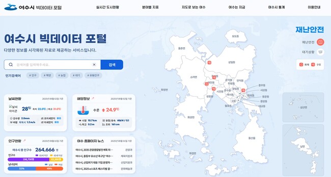 시 관계자는 "이번 빅데이터 포털 구축을 통해 시민들이 여수시의 다양한 현황을 손쉽게 파악할 수 있게 됐다"며 "데이터에 기반한 과학적 정책 수립으로 행정 서비스 질을 한 단계 높일 수 있을 것"이라고 설명했다.