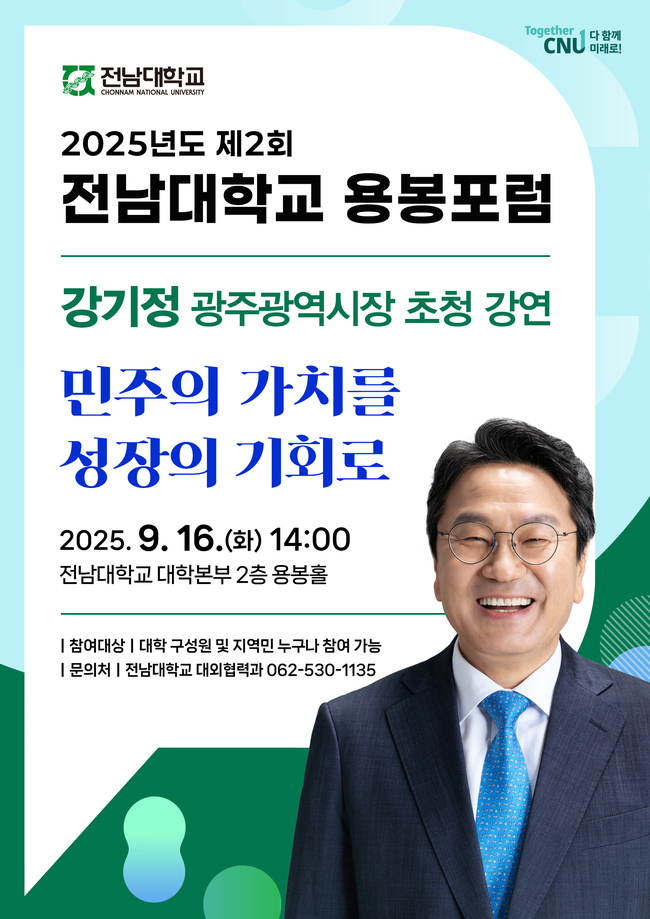 전남대학교 대학본부 국제회의동 2층 용봉홀에서 지역과 대학이 함께 성장할 길을 모색하는 열린 강연 시리즈 ‘2025년 제2회 전남대 용봉포럼’이 오는 16일 오후 2시에 열린다.