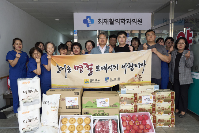 김순호 구례군수는 “명절이라는 특별한 시기에 우리 이웃들이 따뜻한 마음을 느낄 수 있도록 작지만, 진심을 담아 위문을 준비했다”라며, “앞으로도 군민 한 분 한 분이 소외되지 않도록 사람 중심 복지를 더 강화해 나가겠다”라고 밝혔다.