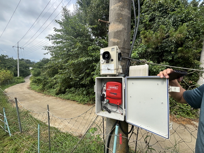 전기울타리가 설치된 9개 농가를 대상으로 사용 여부, 전용 개폐기(전원 차단장치) 및 안전 표지판(전기위험경고판) 설치 여부 등을 점검하고, 사용자에게 전기울타리 운영·관리 준수사항을 안내했다.